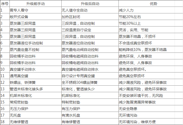 本工藝采用了特殊的真空濃縮水處理技術(shù),配以公司研發(fā)特殊的管路系統(tǒng)和自動控制系統(tǒng),保證了整個回收系統(tǒng)長期、安全穩(wěn)定地運行。此設(shè)備運行成本底,損耗能量??;且水質(zhì)穩(wěn)定、節(jié)省費用。